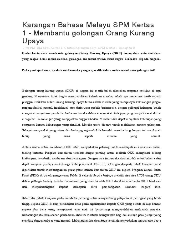 Karangan Bahasa Melayu Spm Kertas 1 Membantu Golongan Kurang Upaya Pdf